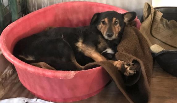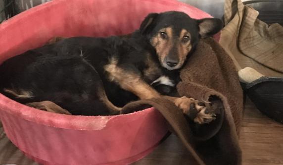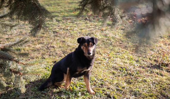 LEVEL 2262524 male, 20.11.2021., in the shelter since 20.11.2023., from streets of the village. He came as very scared and shy, he was just laying in his bed. With time he started to open up, and with people he knows he is totally happy and friendly and loves attention and cuddles. For new people and situations he needs time. He likes company of other dogs, but as he is pretty calm and gentle, it should also be calmer and nice dog who will not annoy him. He will not react, but will not be happy. He likes his female friend Lena and they play together. Cca 50cm