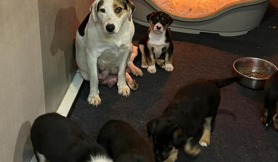 ROSARIO 191035000272131 male, 10.11.2025., in the shelter since 11.2.2026., from Roma village, came with mum Kira and siblings. He has nabelbruch. At the moment cca 30-33cm.