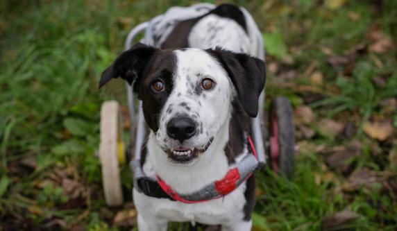 FELIX (191035000084922), male, 15.2.2018., in the shelter since 24.2.2020. cca 50cm – foster home Alex, broken spine, he was operated, now he is on wheelchair. Very happy and dear boy. He looooves walks, he loves life. Alex can say more about him